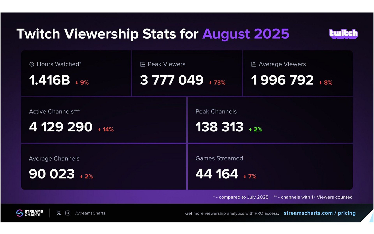 August wasn’t kind to Twitch. The purple giant logged its lowest viewership since 2020, a five-year low. The drop coincided with a platform-wide viewbot crackdown, which scrubbed inflated numbers off the charts and exposed how much of Twitch’s traffic was smoke and mirrors.