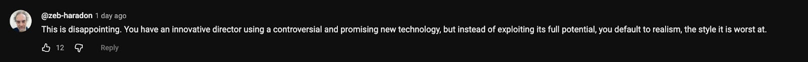 Aronofsky’s efforts look no better than the AI slop flooding everyone’s feeds. If you’re going to use AI, at least do something different with it. We talked about Spike Jonze’s use in his Gucci film a few months ago. His AI worked because he used it to create the uncanny, something AI is inherently better at than realism.