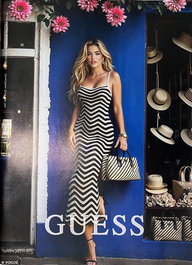 In the August issue of Vogue US, a full-page Guess ad introduced a new face generated by AI.
