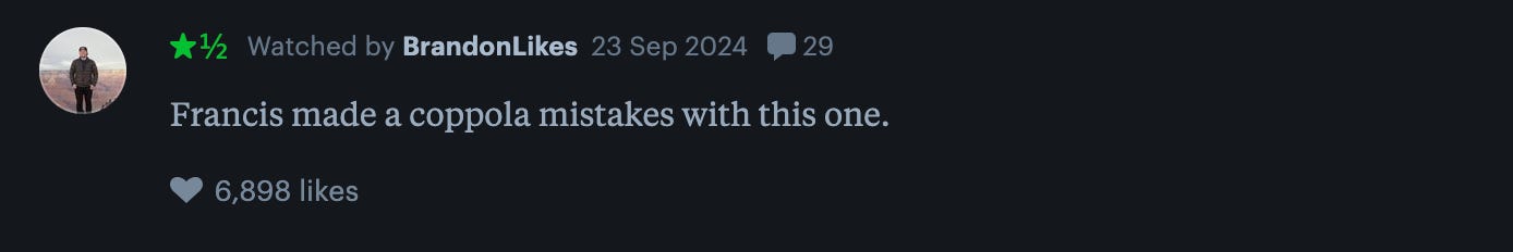 Francis Ford Coppola has spent his entire career proving that moderation and normality don’t make cinema history. Extremity does. Hubris does. These are prices of admission.